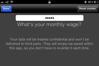 Just enter your monthly wage and the counter starts, showing you how much you make.